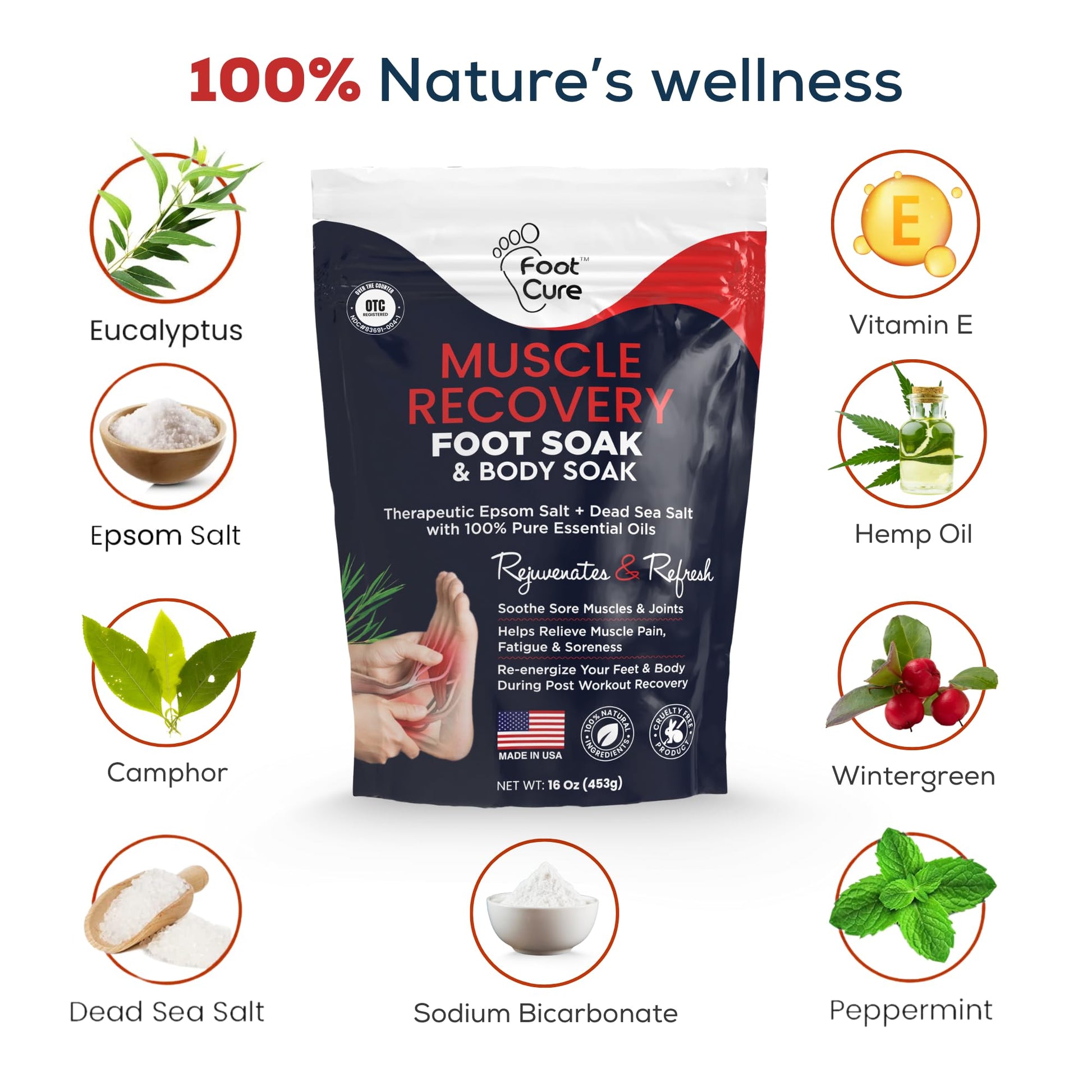 FOOT CURE Foot Soak with Epsom Salts – All-Natural Blend for Relaxing Foot Care – Softens Calluses & Refreshes Feet – Invigorating Scent, Spa Pedicure – 16 oz (Pack of 1)