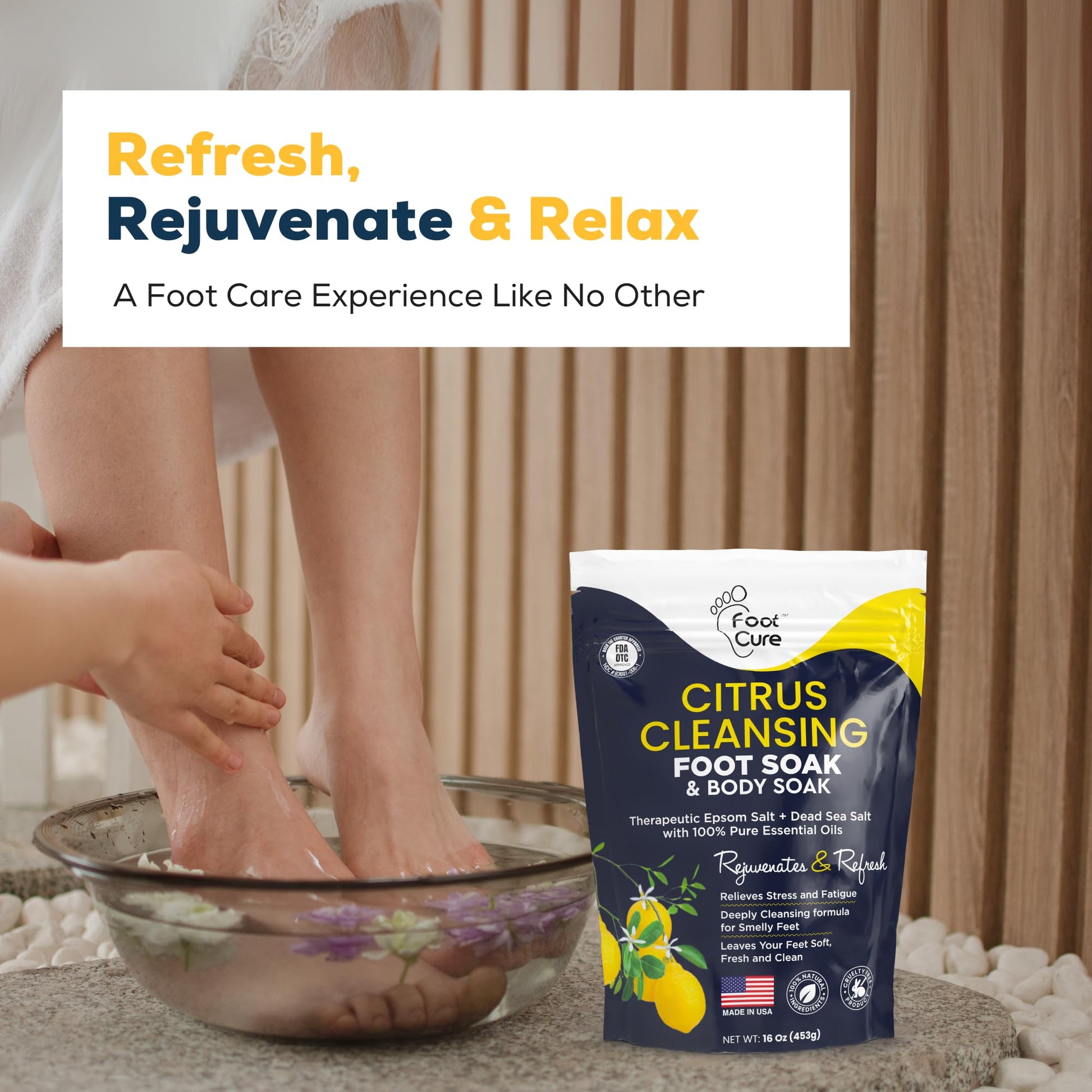 - 100% NATURAL FORMULA MADE IN USA: Our Foot Cure Lavender Oil Foot Soak is crafted with only the finest natural and organic ingredients, including Epsom salts, Pure Dead Sea salts, lavender oil, eucalyptus, magnesium, peppermint, cajuput, camphor, rosemary, and other essential oils. This carefully selected blend helps nourish and refresh your feet for a truly revitalizing experience.